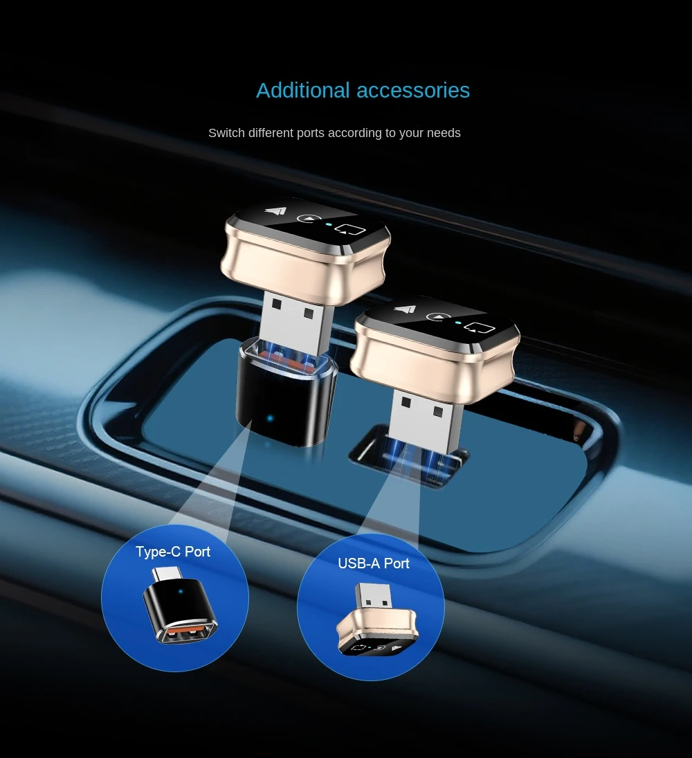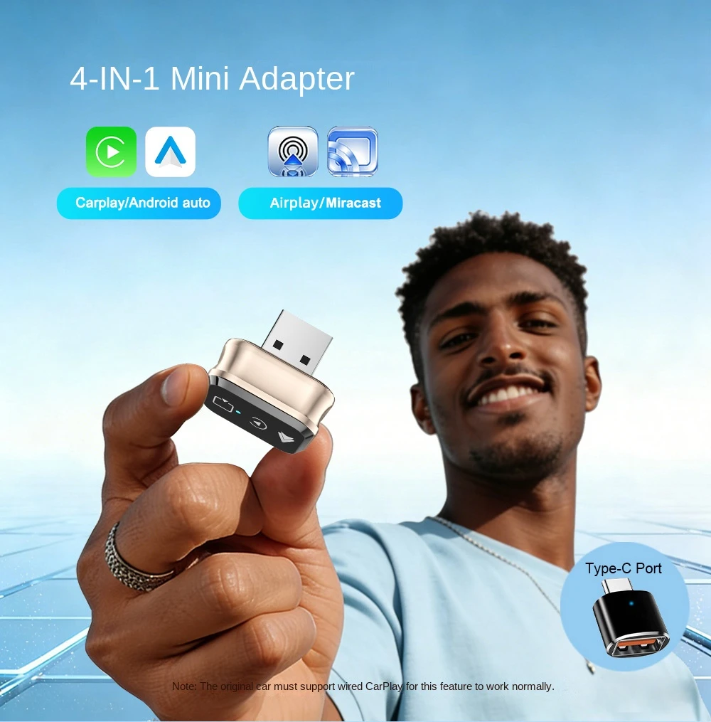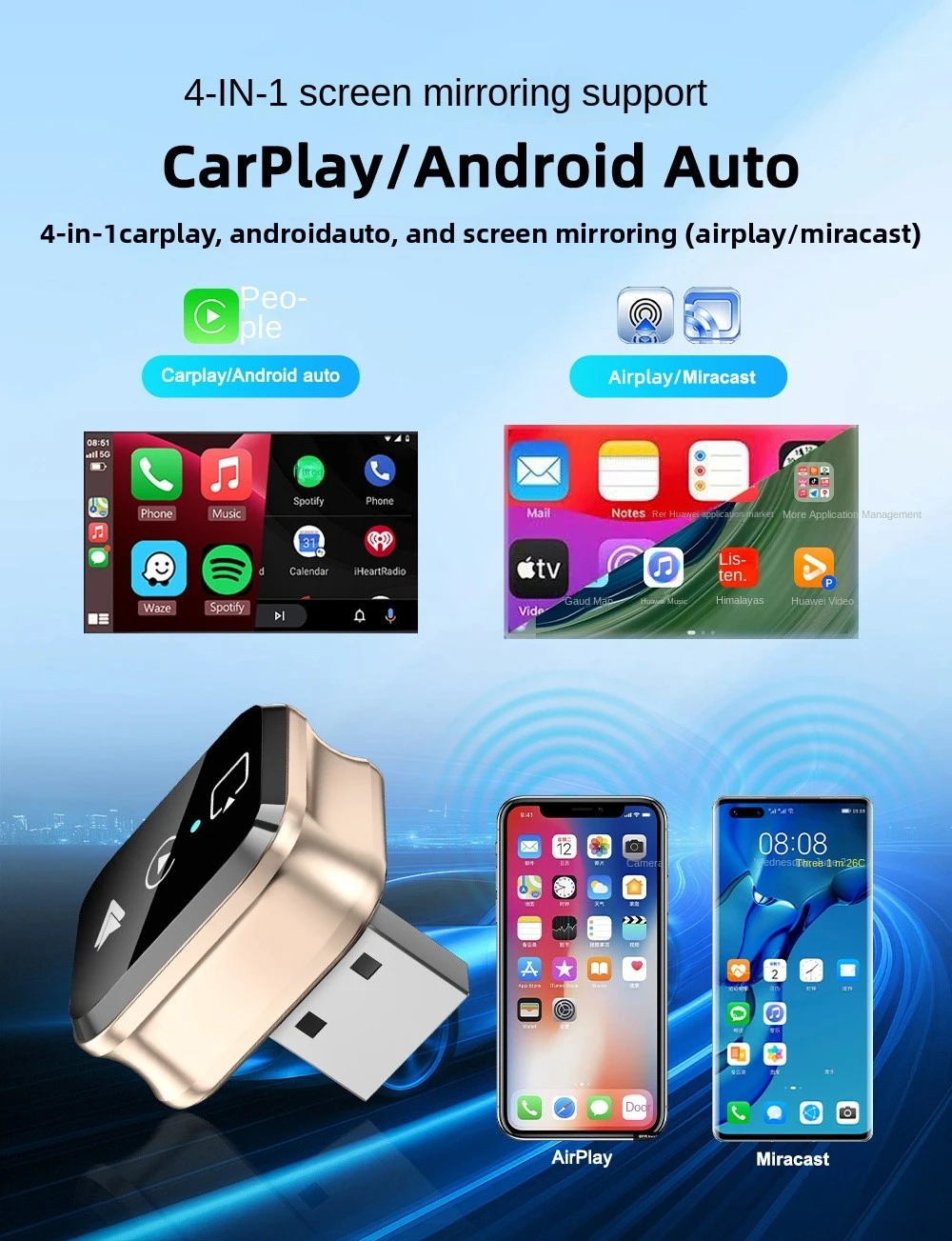 4in1 Smart Wireless CarPlay Adapter USB Auto Connect Plug & Play for iPhone, Android USB Change the car Support screen mirroring